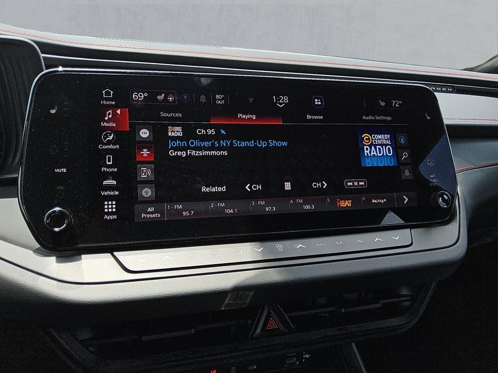 Step inside, and you'll be greeted by a spacious and well-appointed cabin. The Leatherette/Cloth Performance Seats provide exceptional comfort and support, while the Heated Front Seats and Heated Steering Wheel ensure you stay cozy in any weather. The Uconnect 5 infotainment system with a 12.3 display keeps you connected and entertained, with features like Apple CarPlay, Android Auto, and a 4G LTE Wi-Fi Hotspot.