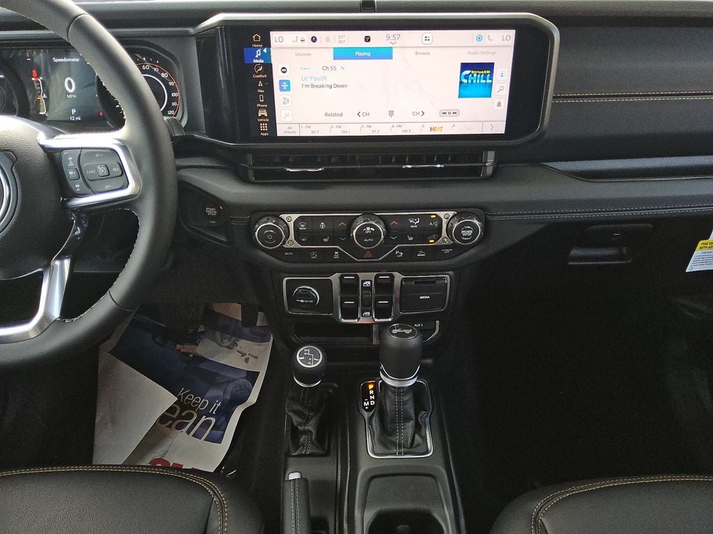 Elevate your driving experience with the Wrangler Sahara's premium audio system, integrated off-road camera, blind spot monitoring, and GPS navigation. Enjoy the convenience of voice command, Bluetooth® connectivity, and a large 12.3-inch touchscreen display. The rugged yet stylish exterior is complemented by 18-inch machine-painted gray wheels, a body-color hard top, and sleek side steps.