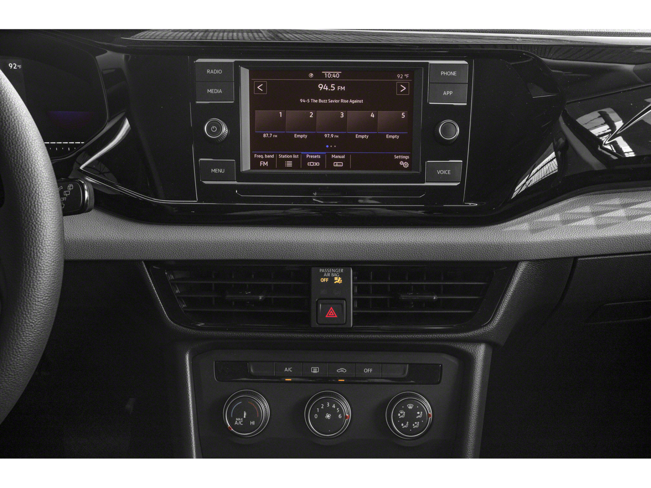 The interior of the Taos 1.5T S is designed with your comfort and convenience in mind. Enjoy the premium Cloth Seating Surfaces, Front Bucket Seats, and Front Center Armrest, along with a Leather Shift Knob and Heated Steering Wheel for added luxury. The Split Folding Rear Seat and Passenger Door Bin provide ample storage and versatility to accommodate your lifestyle.